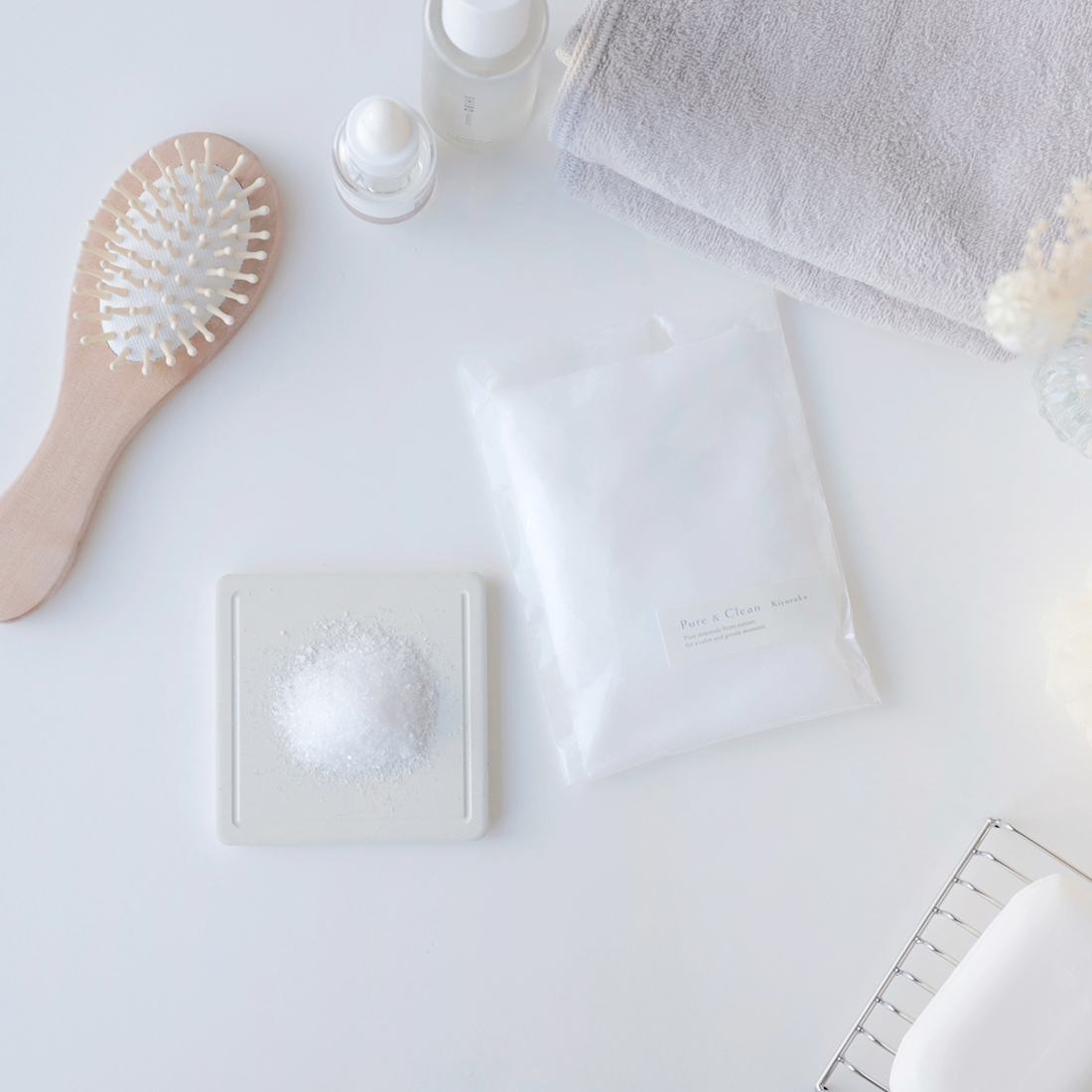 “ソルト”と呼ばれていますが食塩ではないため、香りや雰囲気を楽しみたい方にも取り入れやすく、浴槽を傷めにくい点も特長です。