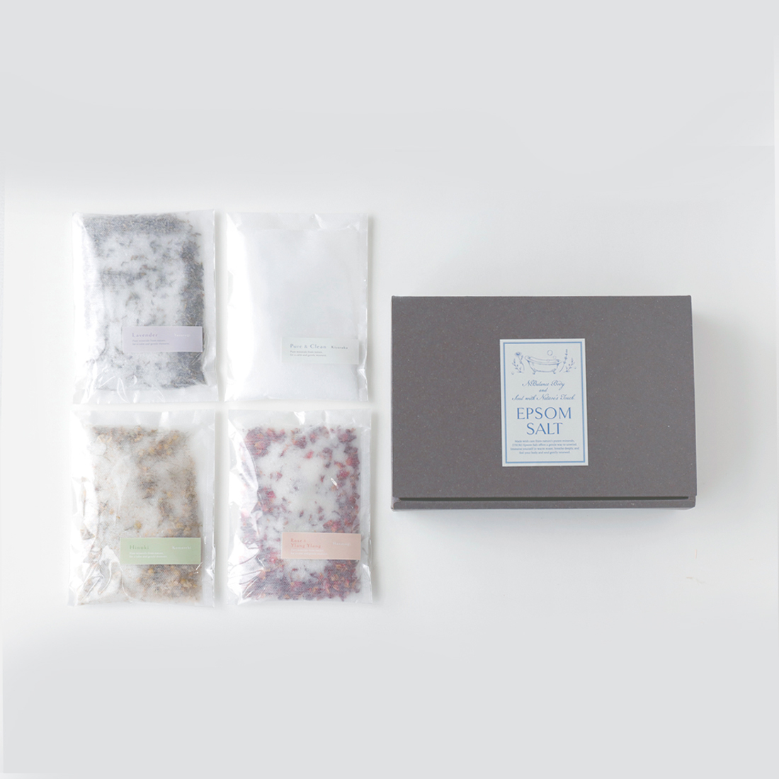 4種類のエプソムソルトが楽しめるギフトセットです。